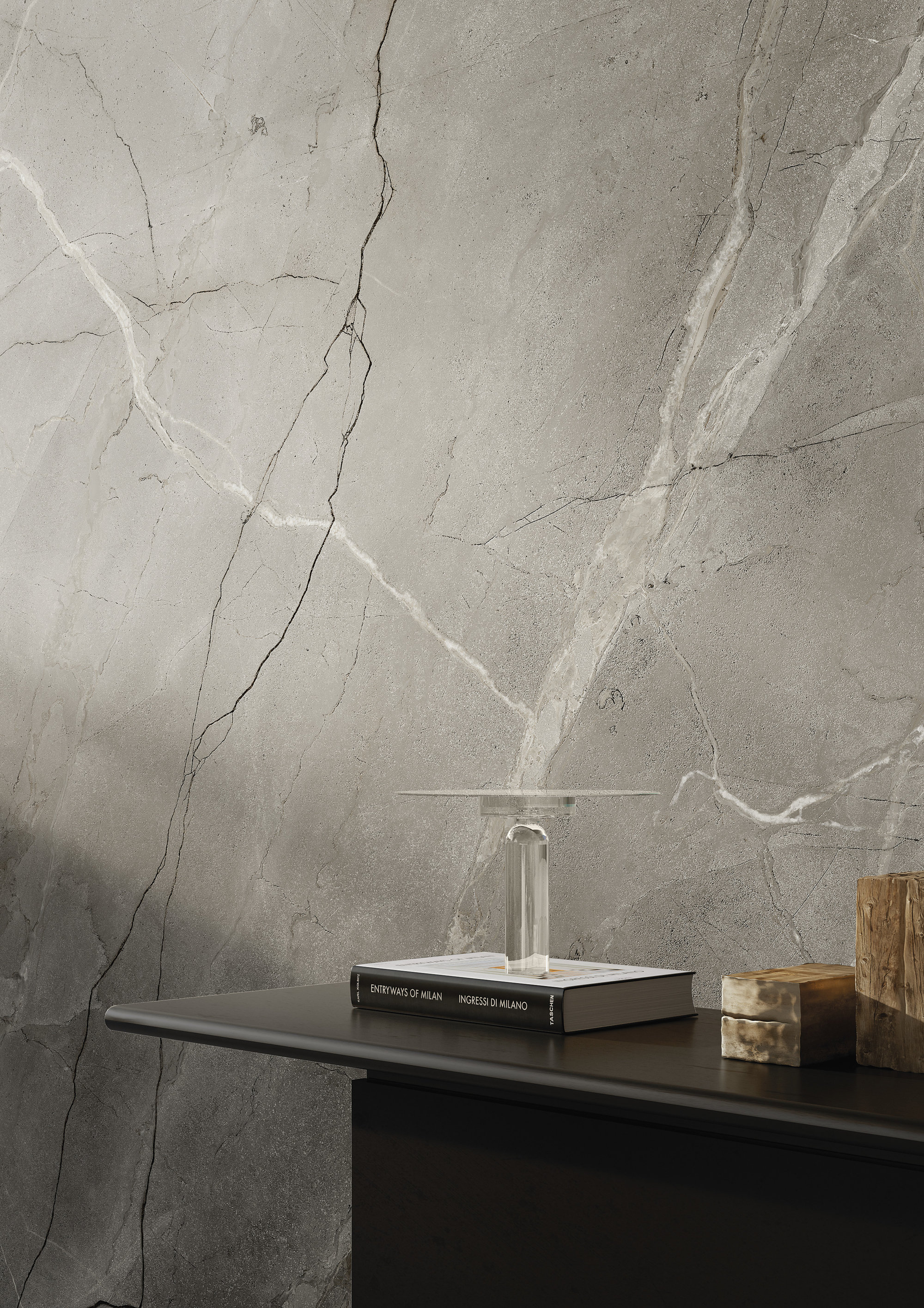 A HIGHLY SOUGHT-AFTER REFERENCE IN THE WORLD OF DESIGN, DISTINGUISHED BY A DEEP, INTENSE GRAY, CROSSED BY ETHEREAL VEINS THAT EMERGE LIKE BREATHS OF LIGHT.