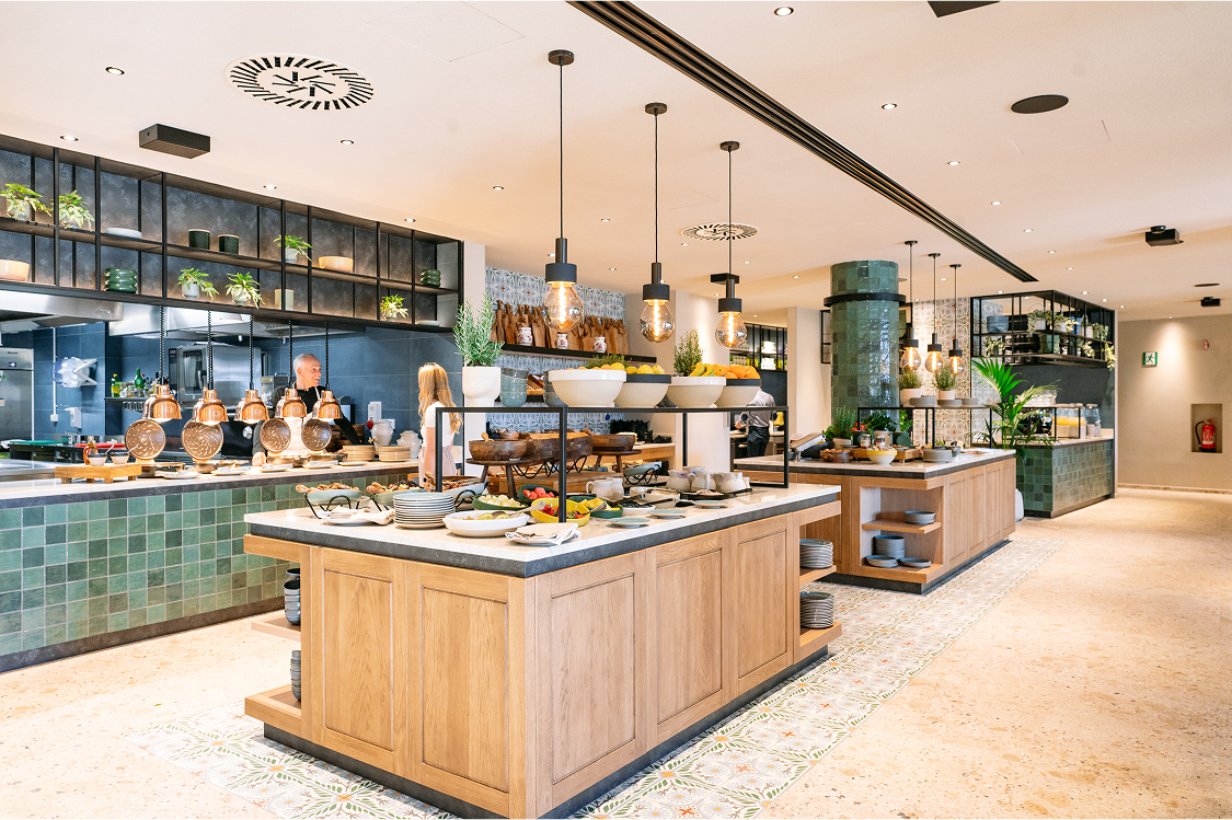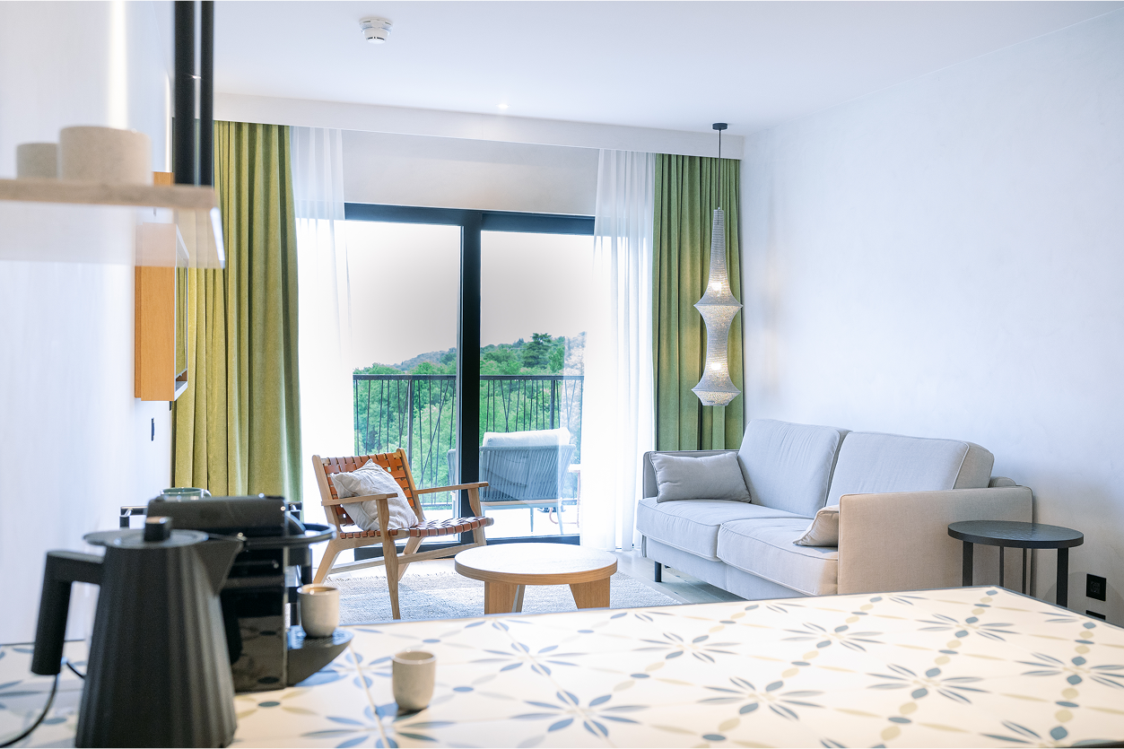 In den stark beanspruchten Gemeinschaftsbereichen ‒ wie in der Lobby, Weinbar und dem herrlichen Spa ‒ wurde Fragmenta Full Body3 in der Farbe Arlecchino verwendet. Die grafische Struktur dieses Materials erinnert an die Schönheit natürlicher Gesteinsaggregate auf sandfarbenem Grund und garantiert außergewöhnliche Beständigkeit sowie eine dauerhaft unveränderte Ästhetik.
