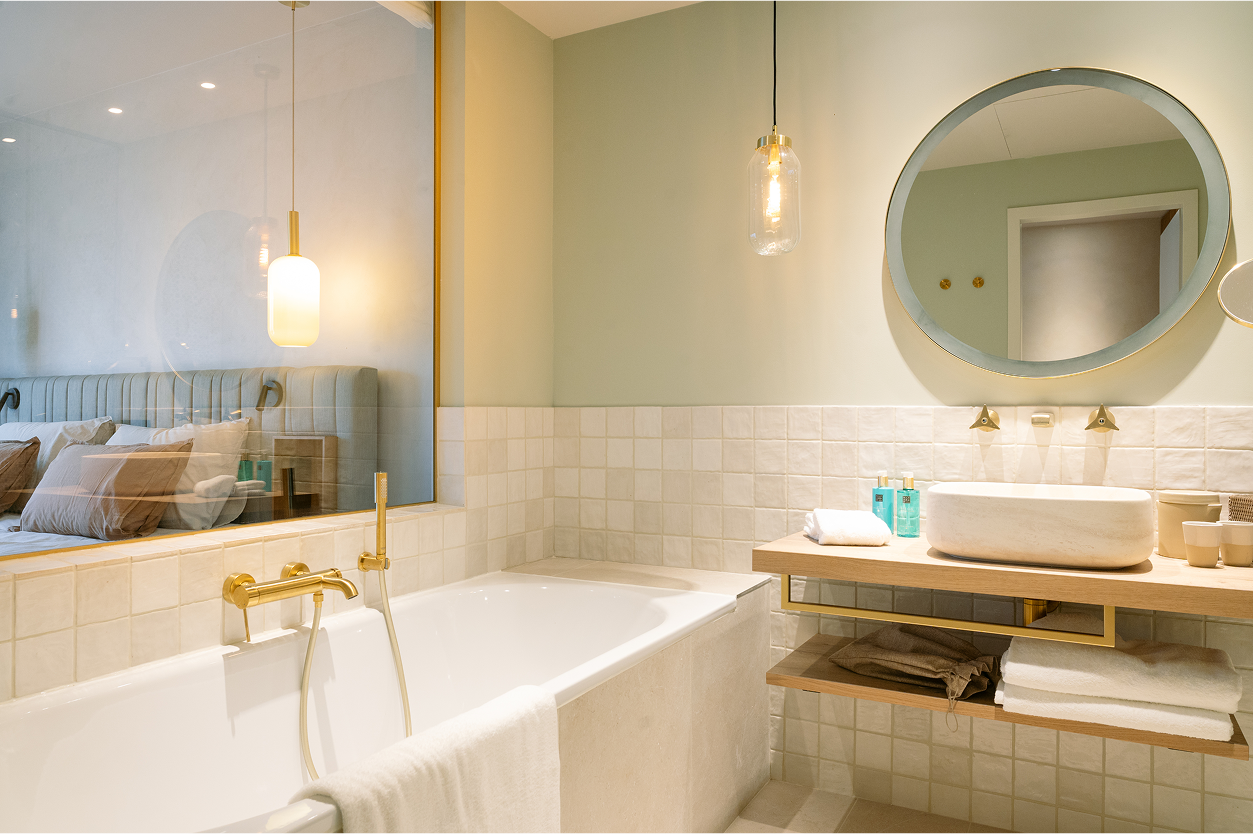 Die Lösungen von Ariostea garantieren neben dem ästhetischen Wert auch Hygiene, einfache Pflege und Haltbarkeit, ganz im Einklang mit der Nachhaltigkeitsphilosophie des Resorts.
