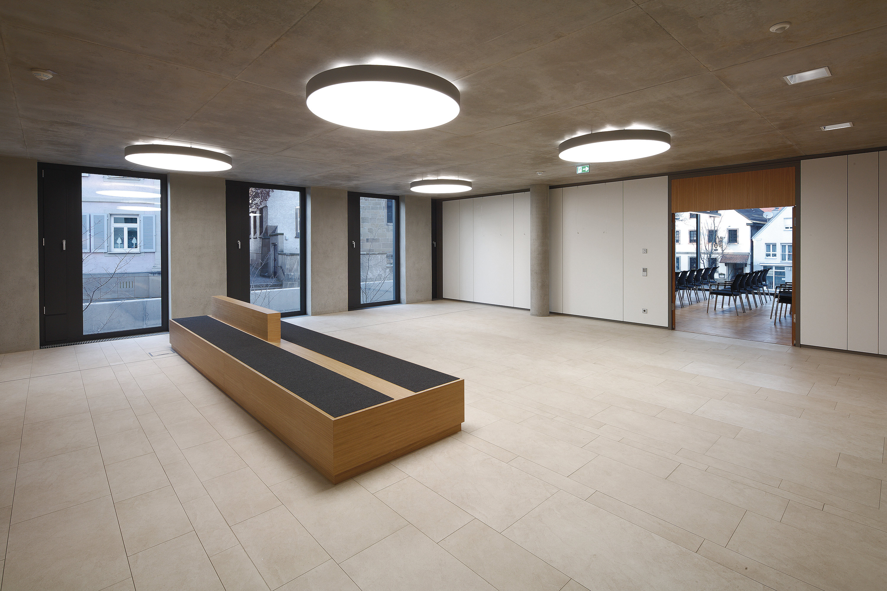 Im Rathaus Leingarten bringt Crema Europa von Ariostea nicht nur die Schönheit des Steins mit, sondern auch alle Vorteile und hohen Leistungen des Feinsteinzeugs von Ariostea, das für seine außerordentliche Zweckmäßigkeit, Hygiene, Sicherheit und Langlebigkeit bekannt ist.