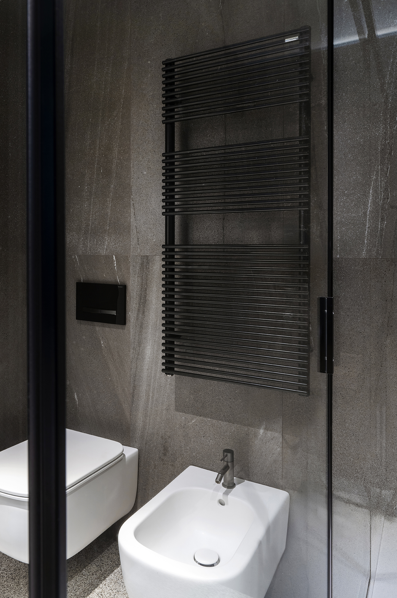 Special attention was given to the bathroom, where comfort and design are directly perceived by guests. Ariostea’s ceramic surfaces bring architect Fiori’s vision to life, engaging in a dialogue between contemporary style and references to local tradition. Ultra Pietra Basaltina was chosen for the walls due to its refined graphic texture and superior technical performance.