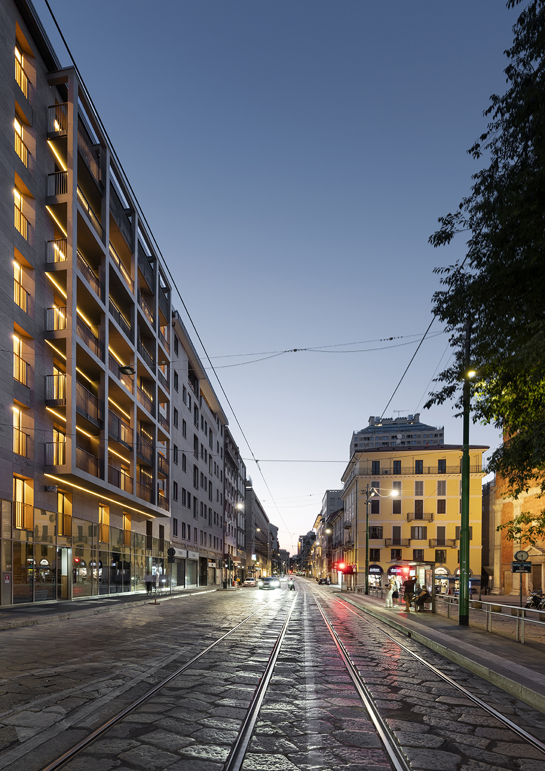 Located in the heart of Milan on Corso di Porta Romana, the Sonder Building is a luxury accommodation facility born from the redevelopment of the former Lloyd Hotel. The project, led by Angus Fiori Architects, resulted in a modern LEED Gold-certified building housing 38 suites and apartments managed by Sonder. Ariostea’s high-tech ceramic solutions played a key role in the renovation, chosen by the architectural firm for their ability to blend design, high performance and sustainability.