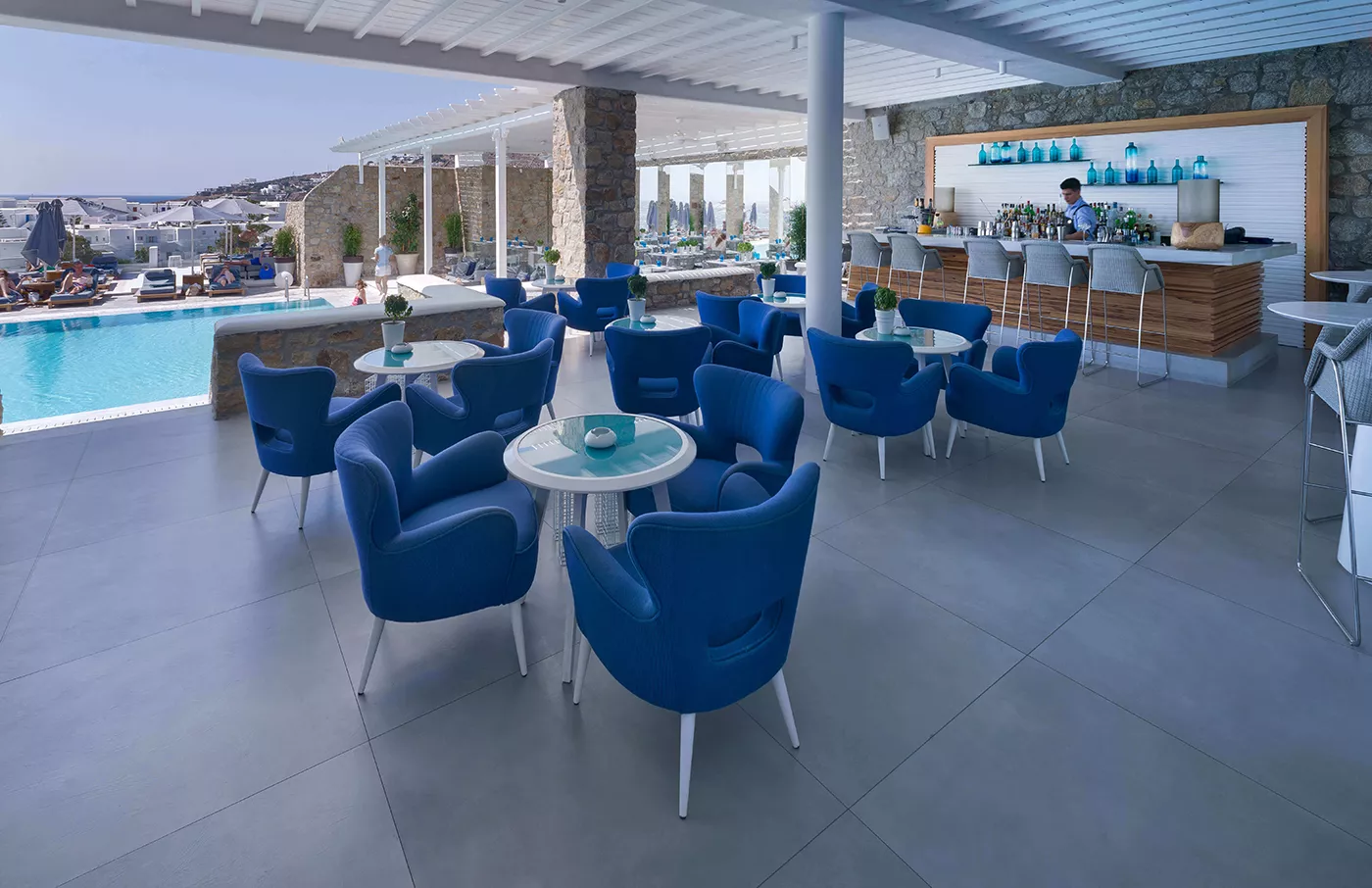 In the renovation project by Galal Mahmoud (GM Architects, 2015), the close relationship between the Ambassador Hotel and the island of Mykonos becomes an essential part of the architectural design, also because of the Lebanese architect’s strong links with the island where he has lived since he was a child.