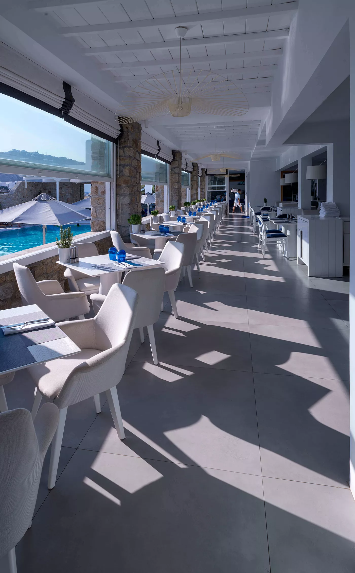 His successful response to the challenge led to the establishment of Myconian Collection Hotels Resorts, including the Ambassador, the epitome of the Relais Châteaux “art de vivre”. Only minutes away from the fine sand of Platis Gialos, the Ambassador fits harmoniously into the slopes and terraces of the typical landscape of the Cyclades with its bold identity.