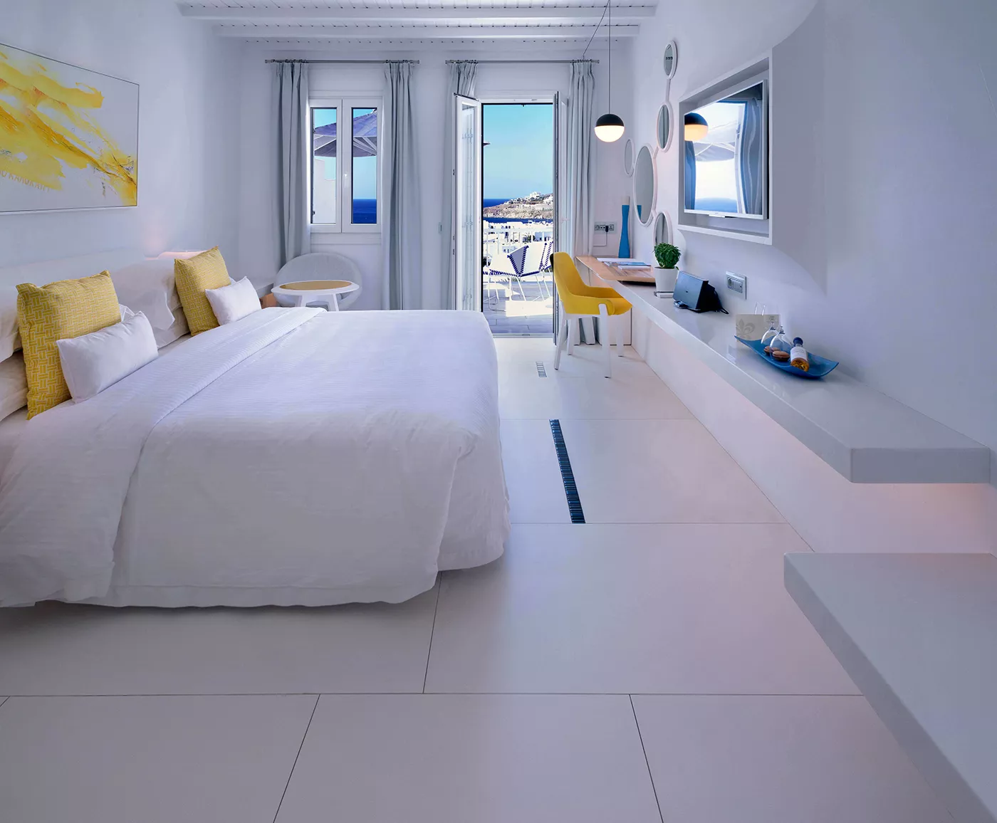 His successful response to the challenge led to the establishment of Myconian Collection Hotels Resorts, including the Ambassador, the epitome of the Relais Châteaux “art de vivre”. Only minutes away from the fine sand of Platis Gialos, the Ambassador fits harmoniously into the slopes and terraces of the typical landscape of the Cyclades with its bold identity.