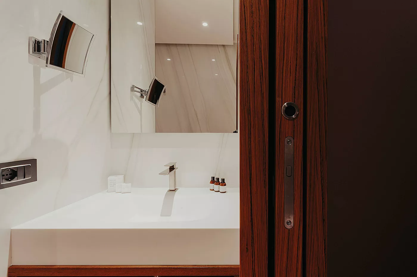 Spazi, materiali e cromatismi sono quindi stati studiati per un progetto d’interior che diviene parte integrante dell’esperienza di ospitalità: pavimenti in legno, mobili, rubinetteria e tutti i complementi d’arredo sono stati scelti tra prodotti di primissima qualità, al fine di poter appagare i sensi e il gusto estetico degli ospiti.
