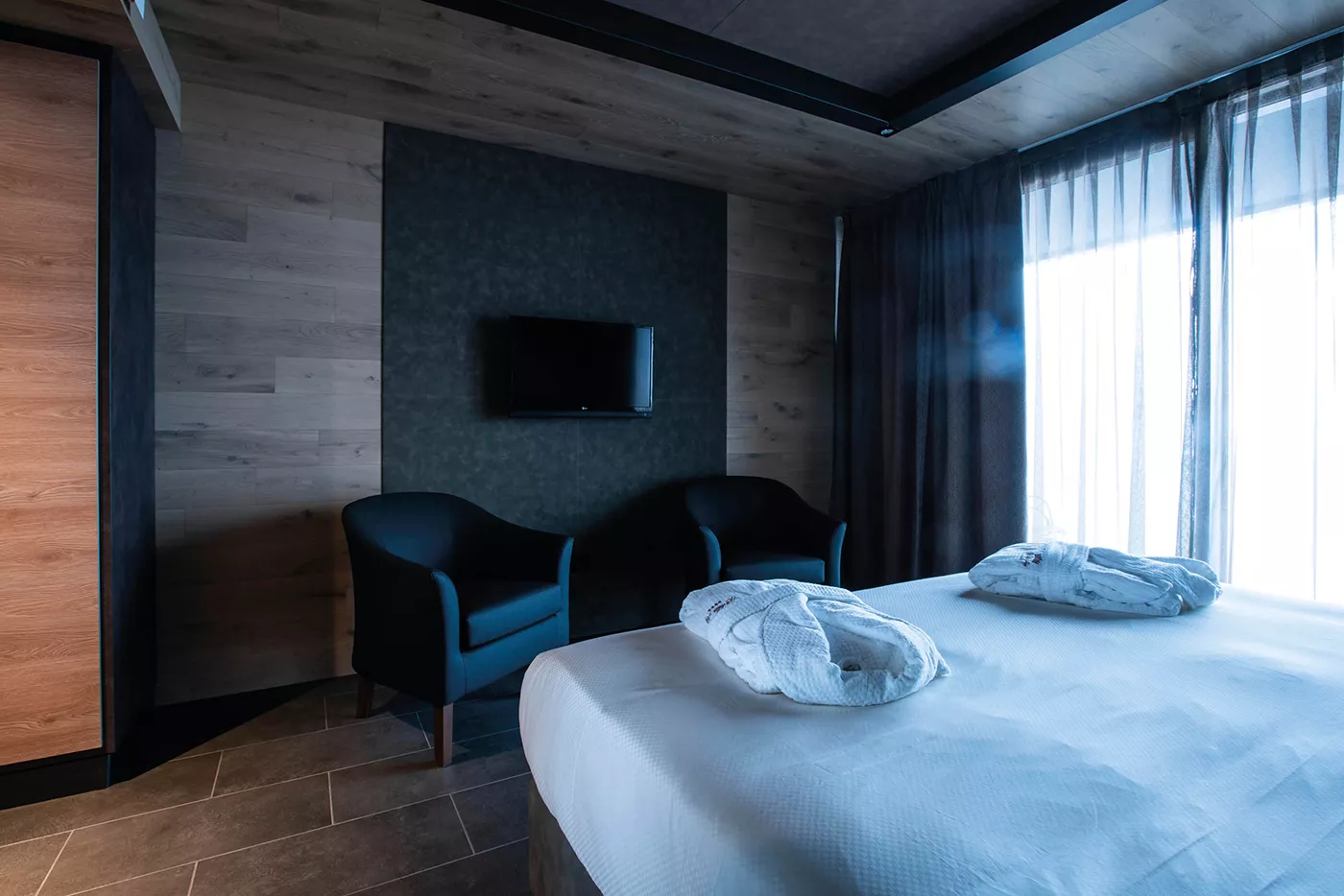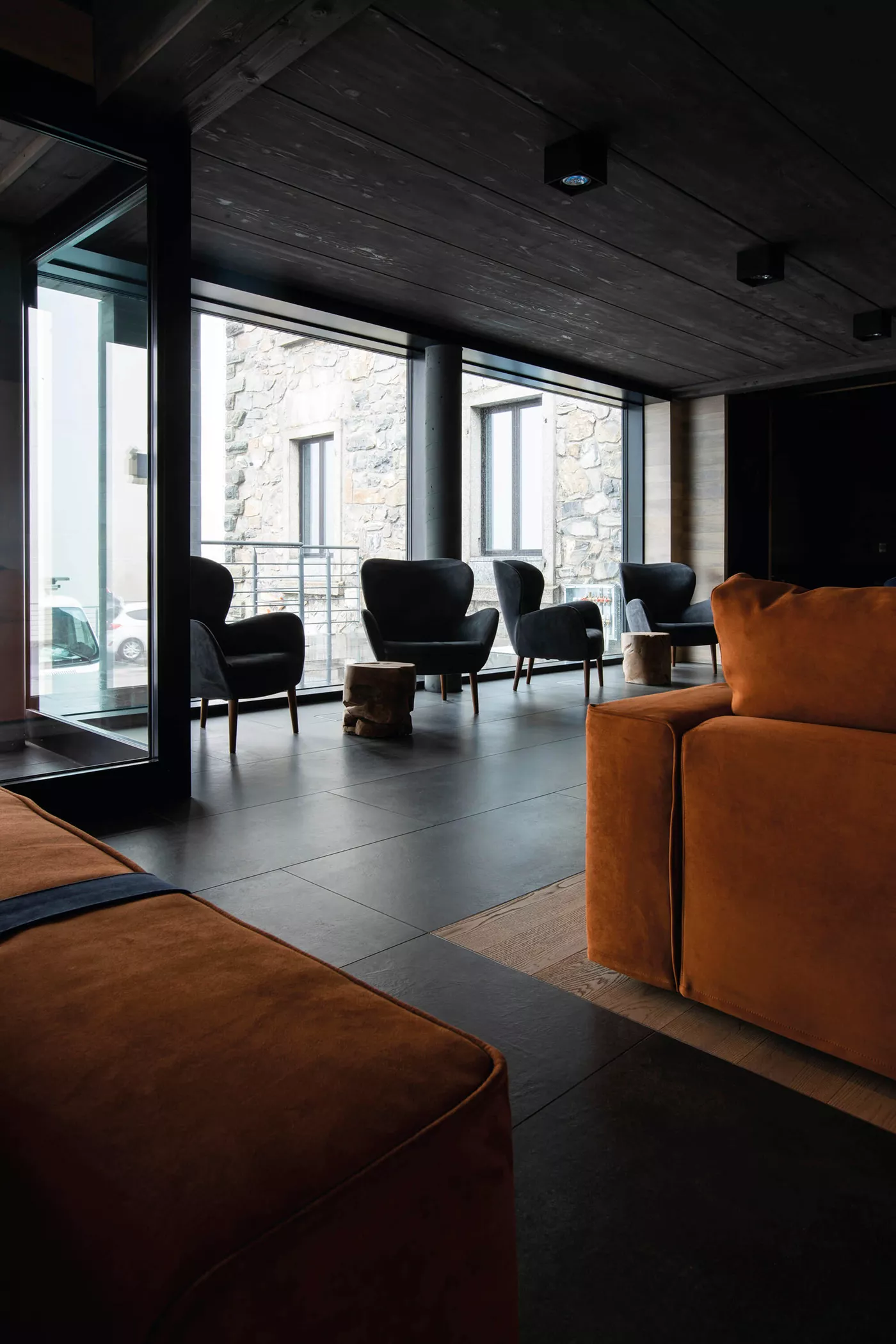 In generale, il progetto di rinnovo ha interessato un totale di 1.400 mq., ampliando notevolmente l’offerta ricettiva, portandola a 26 camere, nuove zone lounge all’interno dell’albergo e una nuova area benessere, in grado di accogliere anche gli ospiti che non soggiornano presso l’hotel, con tanto di spogliatoi e reception dedicata. Completano il progetto il rinnovo della zona bar della struttura storica, la creazione di un nuovo bersò e la riprogettazione della ski room.