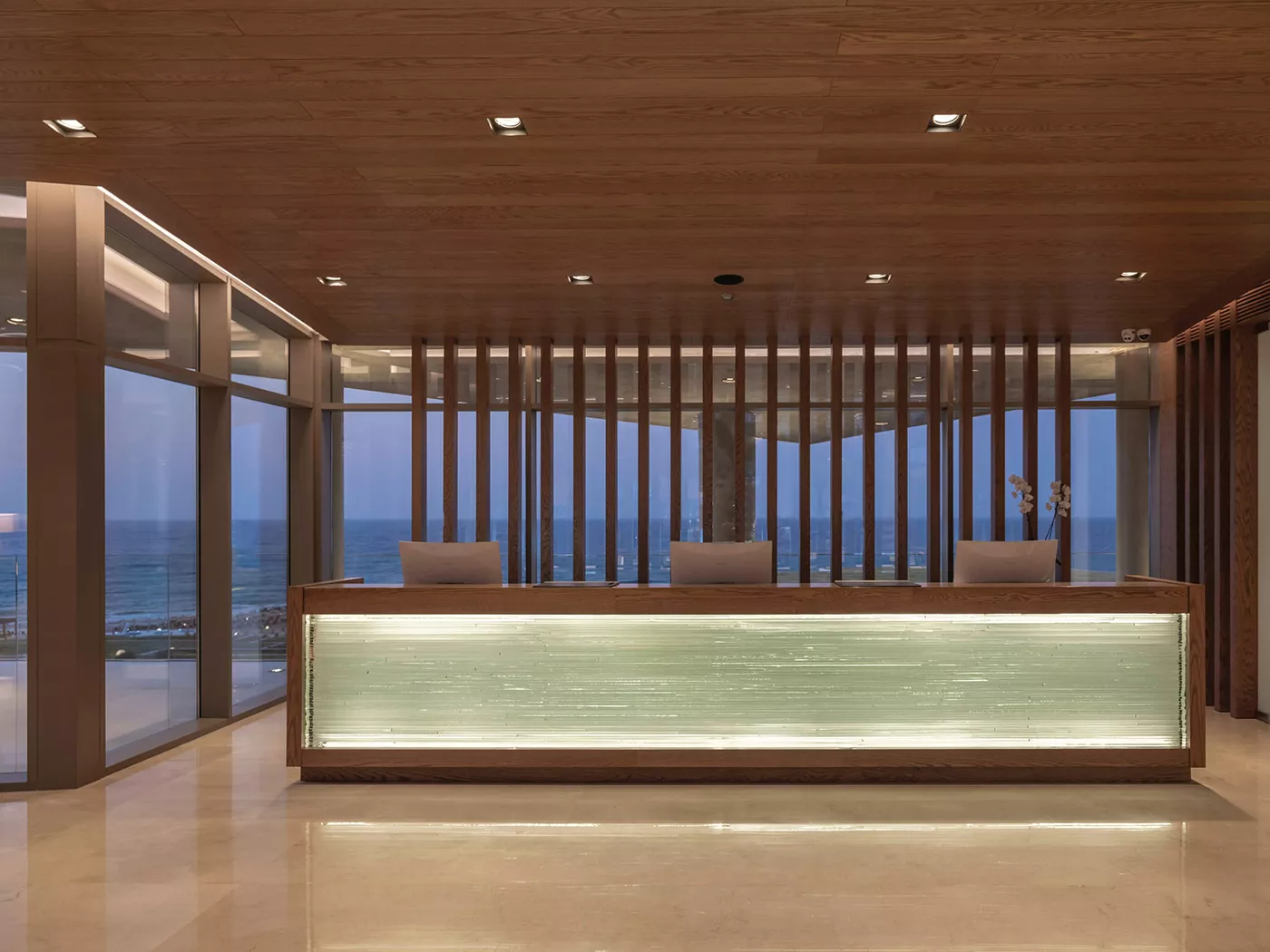 Il design del resort si orienta verso la massima accoglienza e funzionalità, proprietà connaturate alle lastre in gres porcellanato Ultra Ariostea.
