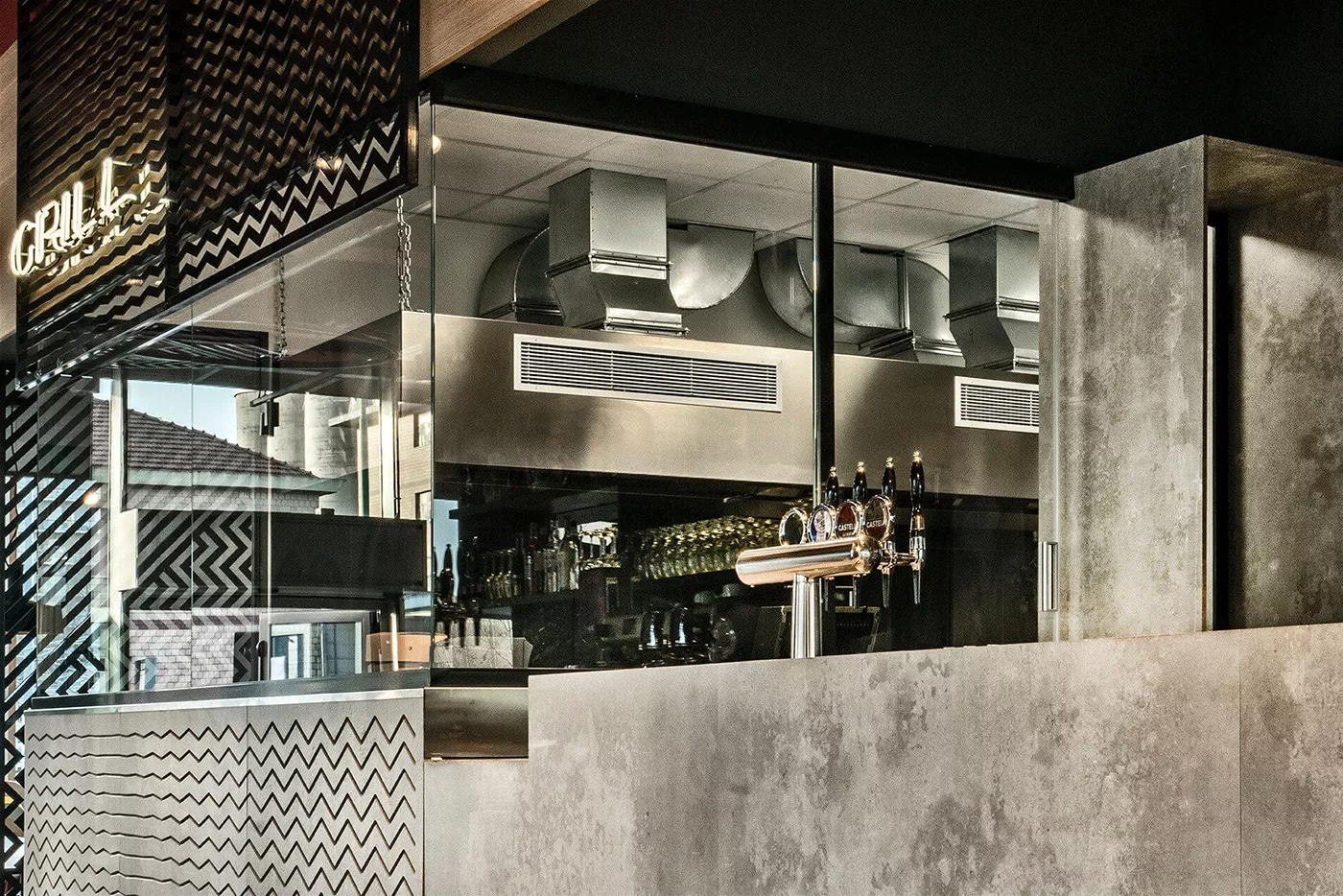Un format di ristorazione innovativa per conoscere ed esplorare le sfaccettature della grill culture. Un motivo grafico versatile, realizzato con un software parametrico, gioca col pattern della griglia, scomponendolo e ricomponendolo in diverse varianti, in parallelismo con la ricchezza e la varietà della cultura grill.