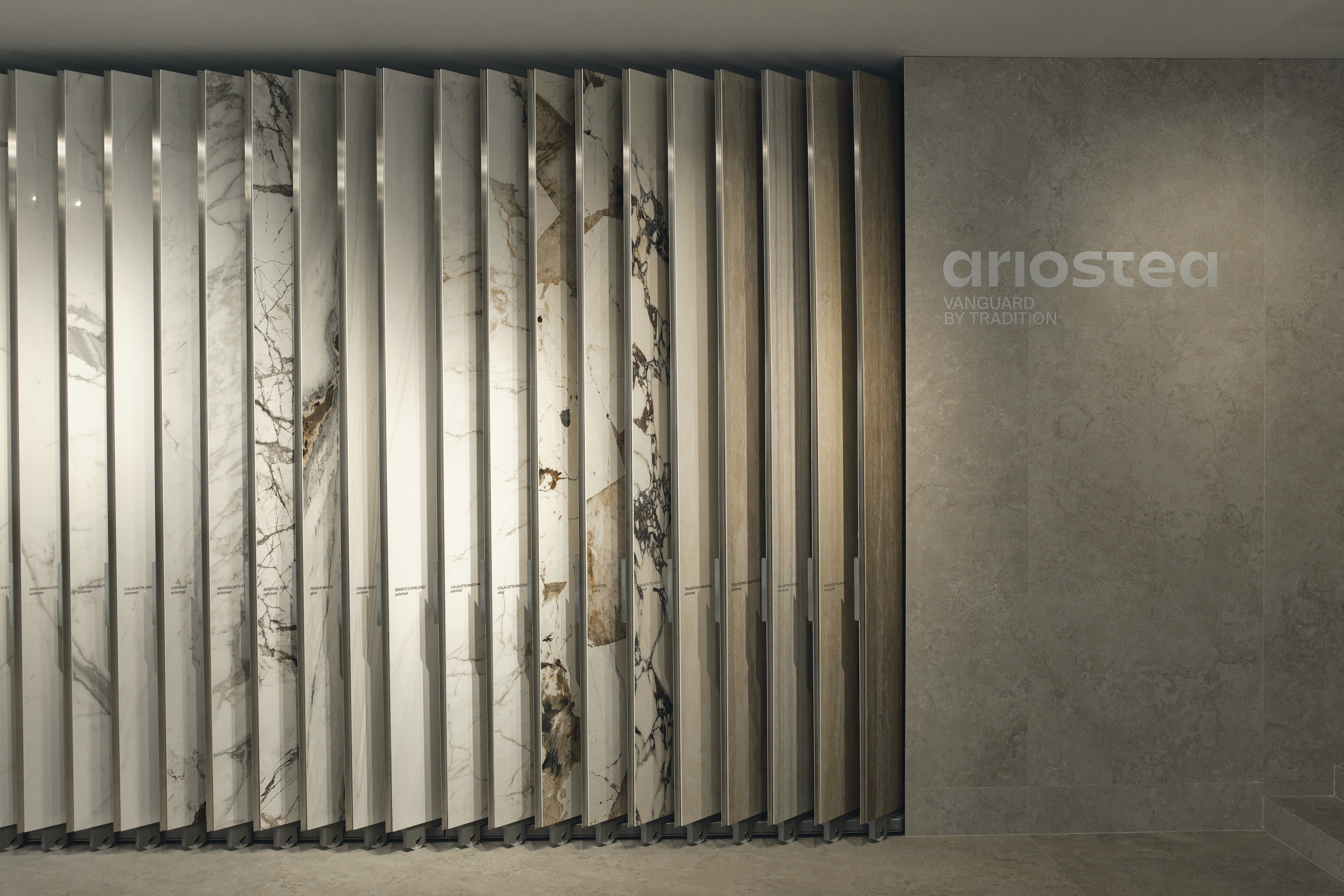 Il cuore pulsante dell’identità di Ariostea si trova qui, dove la versatilità delle superfici Ultra viene celebrata.
