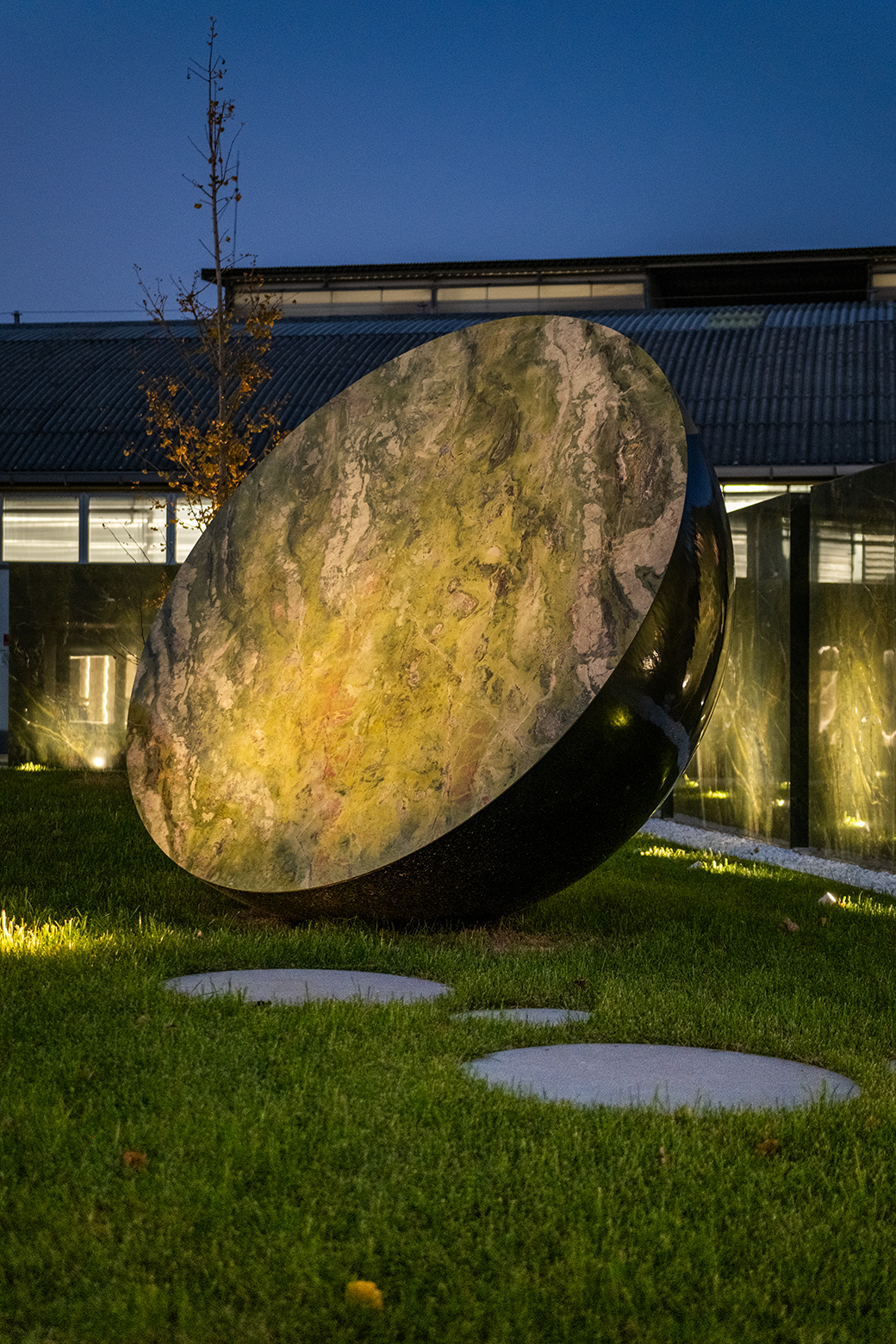 Tra eleganti vetrate, il verde rigoglioso e dettagli di arredo urbano, si inserisce una distintiva architettura con pannelli in successione che esibiscono una scelta di lastre Ultra.